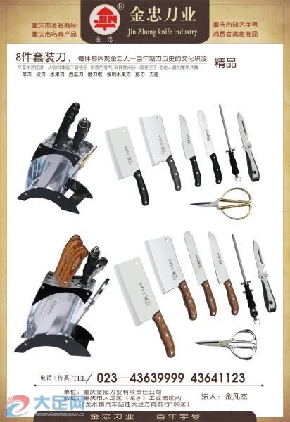 重慶金忠刀業(yè)有限責(zé)任公司主要制造銷售不銹鋼系列刀具,使用國家商標(biāo)局核定的“金忠”牌商標(biāo)。