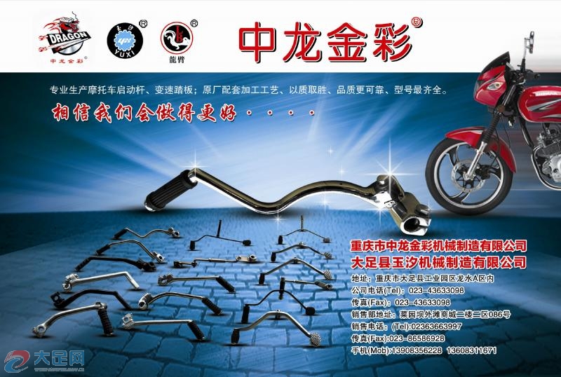 重慶市中龍金彩機(jī)械制造有限公司經(jīng)營(yíng)范圍:摩托車配件制造、銷售。