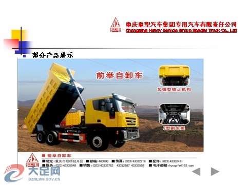 重慶重型汽車集團專用汽車有限責任公司,現(xiàn)有主要生產(chǎn)設備134臺(套),擁有國內(nèi)較大型的1030噸和800噸油壓機,為國家工信部《公告》內(nèi)企業(yè)和CCC認證企業(yè),主要產(chǎn)品有:重型自卸車、粉粒物料運輸車、廂式運輸車、集裝箱運輸車、半掛車、罐式車及汽車燃油箱、貯氣筒、載貨車車廂等零部件。多年來公司在斯太爾-紅巖平臺積累了豐富穩(wěn)定的技術、制造經(jīng)驗,產(chǎn)品質(zhì)量在行業(yè)內(nèi)處于優(yōu)勢地位。
