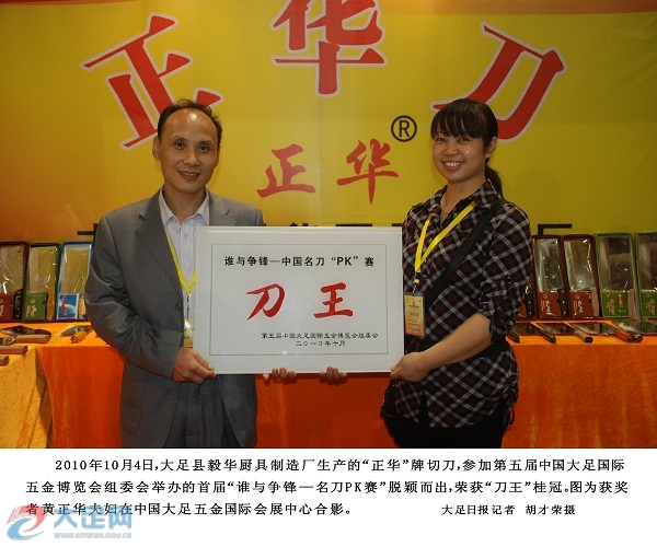 本公司將千年大足五金技術(shù)優(yōu)勢與現(xiàn)代工藝結(jié)合,開發(fā)主要產(chǎn)品有:廚用刀、切菜刀、斬骨刀、水果刀、屠宰刀、西瓜刀等系列產(chǎn)品。其“正華”牌切刀在第五屆中國大足五金國際博覽會《誰與爭鋒——中國名刀PK賽》上,以其優(yōu)異的硬度、鋒利度等指標(biāo),摘取“刀王”桂冠。