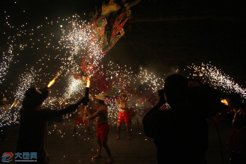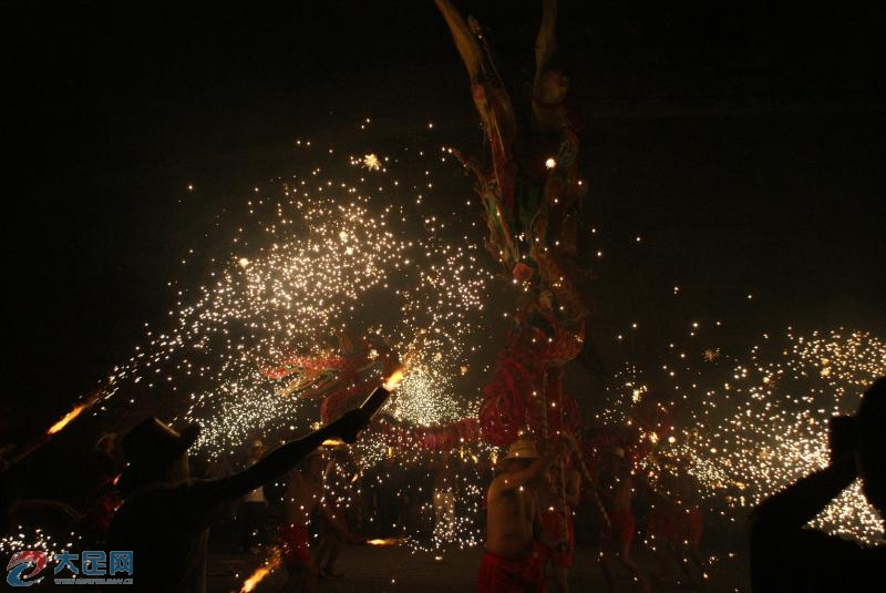 中敖火龍的顯著特色在于一個“火”字。舞龍從大年初一開始,給千家萬戶拜年,到元宵夜燒龍。燒龍時,舞龍者先要沐浴,然后赤膊上陣,任由煙火噴、鐵水制成的禮花燒,直至整條龍在鞭炮聲中化為灰燼,而舞龍者不受一點灼傷。