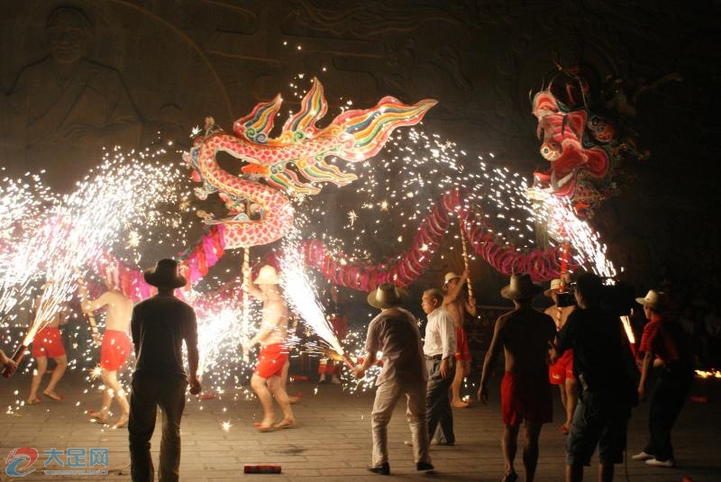 玩龍舞龍,是民間喜聞樂見的一種文化活動,有著悠久的歷史。被稱為“中華一絕”的中敖火龍,更是舞出了火的絢麗,龍的豪邁。它是獨具特色的大足民間傳統(tǒng)文化活動之一,每年春節(jié),中敖鎮(zhèn)的人民都要舞龍燒龍,儀式十分隆重、壯觀,以此來驅(qū)除瘟疫病害,祈求風調(diào)雨順、吉祥平安。2011年被列入重慶市第三批市級非物質(zhì)文化名錄。