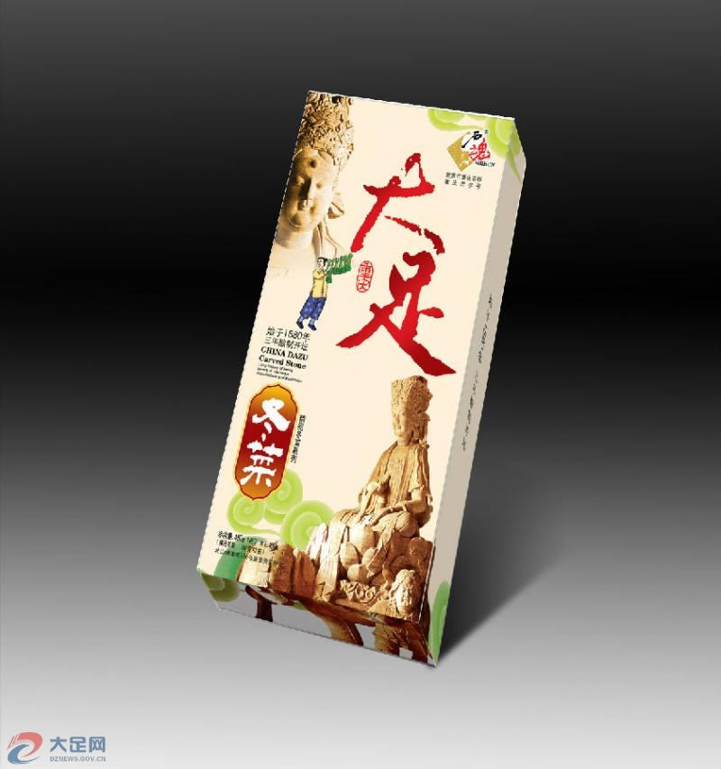 “石魂”冬菜小禮盒系列是大足海天石魂農(nóng)業(yè)科技發(fā)展有限公司才開(kāi)發(fā)的新產(chǎn)品,該系列產(chǎn)品有:即食冬菜禮盒、佐料冬菜禮盒、精品冬菜禮盒三種產(chǎn)品,是專門針對(duì)旅游客人方便攜帶的小禮盒,該禮盒包裝設(shè)計(jì)以大足石刻為理念,有開(kāi)袋即食產(chǎn)品,也有川渝名菜回鍋肉、冬菜炒肉絲及北方人愛(ài)吃的面食面紹,還有做扣肉的精品冬菜尖。該禮盒系列包裝精美,是來(lái)大足旅游客人方便攜帶的必帶禮品。