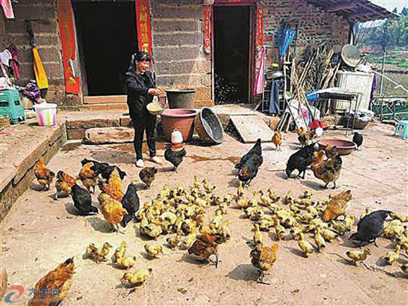 “啊來來來……啊來來來……”3月1日,記者來到曾經(jīng)的貧困戶周志萍的家,還未進(jìn)門就聽見里面?zhèn)鱽磉汉嚷?。走進(jìn)院子里一看,一群雞鴨正在爭搶從周志萍手中灑下的谷子,場面頗為熱鬧。