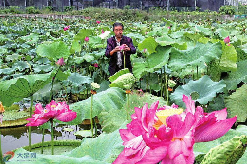學(xué)蠶桑出生的陶德均因癡迷于荷花“出淤泥而不染,濯清漣而不妖”的品格和極具潛力的經(jīng)濟(jì)價值而“辭職歸田”,專門種植蓮藕。