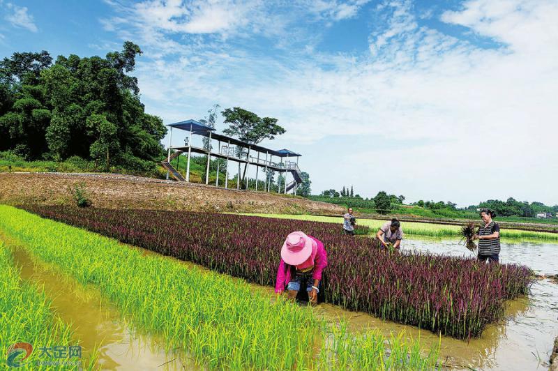 近日,拾萬(wàn)鎮(zhèn)長(zhǎng)虹村五彩壩村民正在移栽“五彩水稻”。為拓寬鄉(xiāng)村旅游的線路,該鎮(zhèn)打造了一片面積約200畝的“五彩稻田”,栽培有紫、紅、黃、綠、白五種顏色的水稻,并在田間組成了“中國(guó)地圖”、“鄉(xiāng)村振興”、“中國(guó)夢(mèng)”等圖案。最佳觀賞期8月到9月。