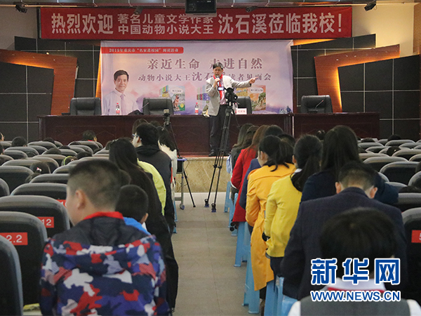 沈石溪為孩子們做精彩演講。新華網(wǎng)發(fā)(申思思攝)