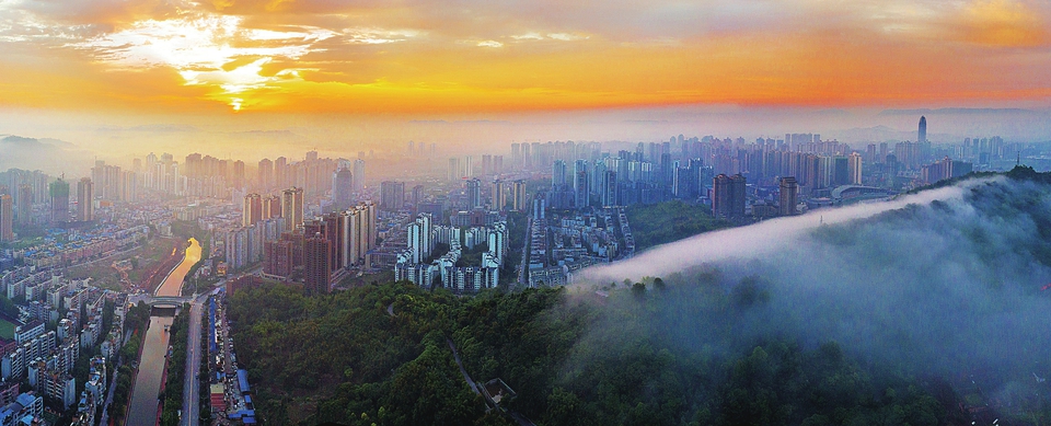 昨日凌晨,大足城區(qū)上空出現(xiàn)平流云景觀,在霞光的映照下,云霧川流于青山與樓宇之間,呈現(xiàn)出一幅幅宛如海市蜃樓般的生態(tài)畫卷。我區(qū)以治污減排為核心,全力推進“藍天行動”,今年截至5月21日,全區(qū)空氣優(yōu)良天數(shù)119天,同比增加11天,重度及嚴重污染天數(shù)為零,生態(tài)環(huán)境質(zhì)量持續(xù)向好。 記者羅國家攝